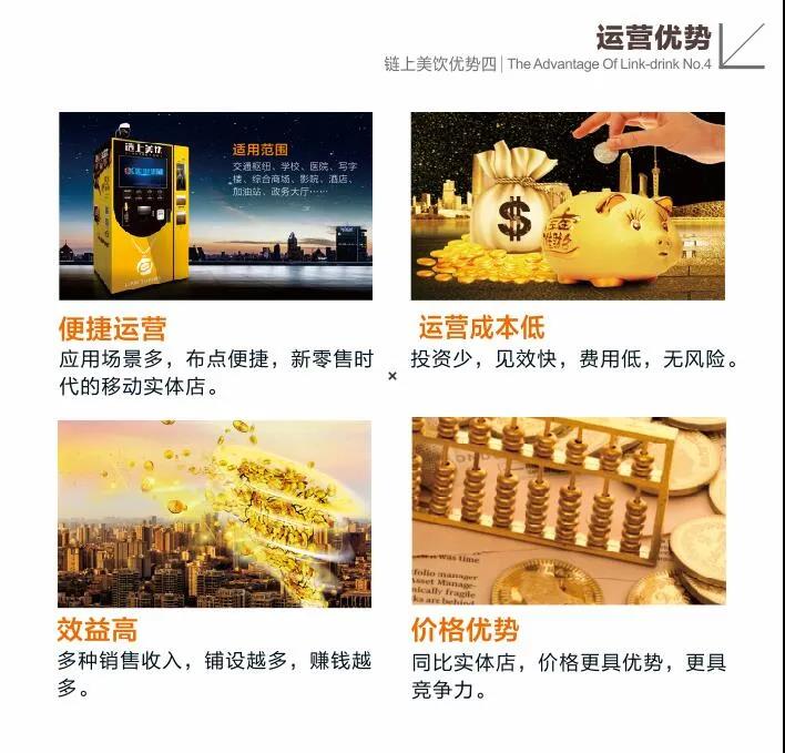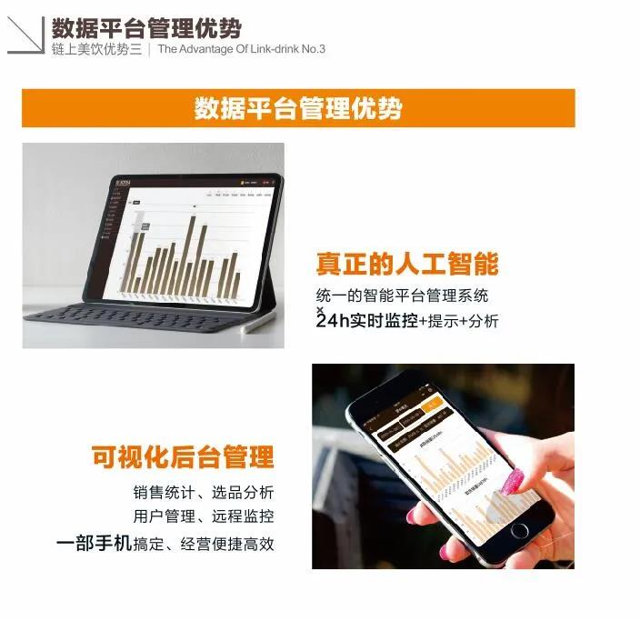 口味更多更營養(yǎng):索伊超大8+1料盒組合,兼顧熱飲、冷飲、冰飲等多種口味,使得現(xiàn)磨咖啡、現(xiàn)調(diào)奶茶、草本養(yǎng)生、冰鎮(zhèn)飲品等40余種飲品一機(jī)實(shí)現(xiàn);24小無人值售;數(shù)據(jù)化后臺管理,維護(hù)簡單方便;支持刷卡、掃碼,一鍵點(diǎn)擊,即時(shí)享用。